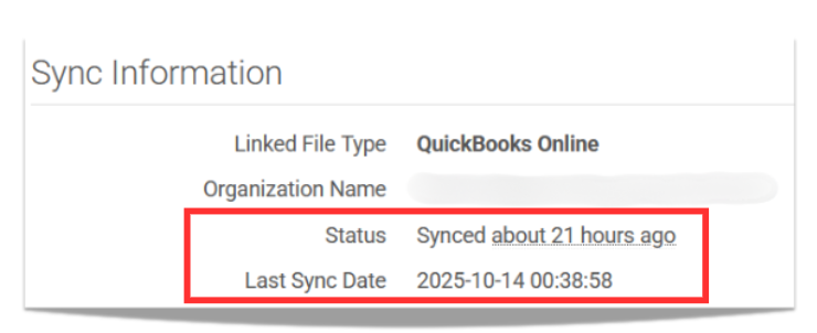 QuickBooks Online files are automatically enrolled in nightly auto-syncs. You can click on the Last Sync Date to review the sync history if needed.
