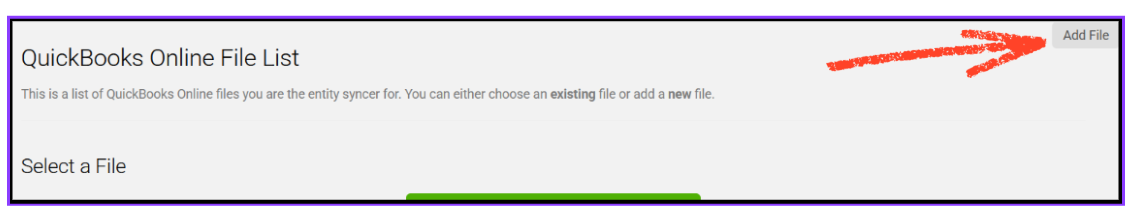 The previously linked QBO file will appear in a green box. Click that file to connect more Locations/Classes from the same file or click Add File to connect a new QBO file.