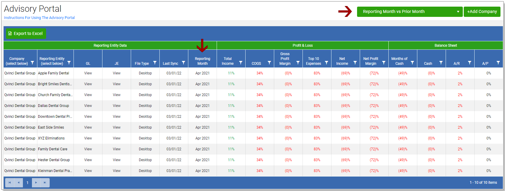 The Advisory Portal uses the Reporting Month in the comparison choices, which is set by the user. The Reporting Month is the As of Date.
