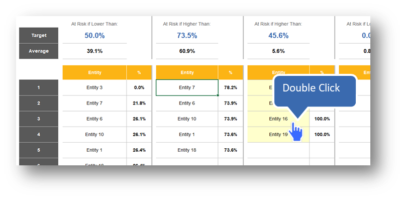 A blue hand cursor indicates interactive data—Double Click to view details.