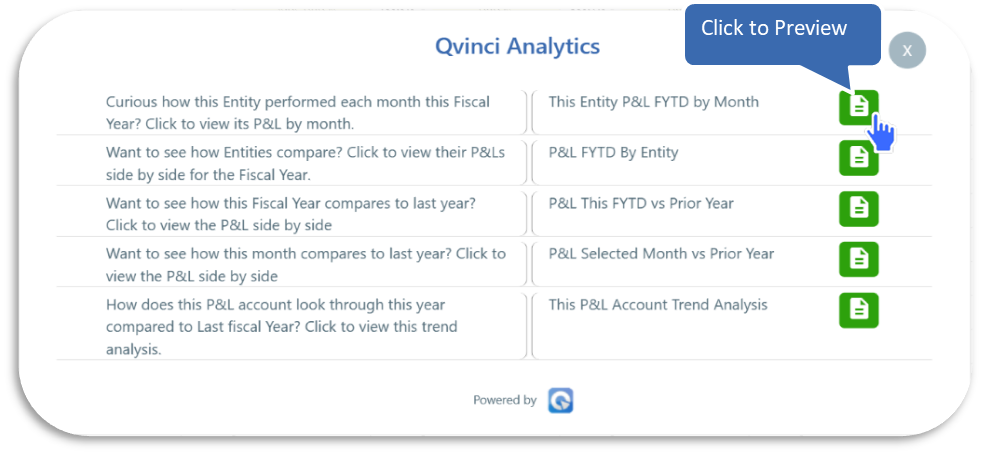 This guide explains how to use Qvinci’s templates to access insights. Double-click any number to view suggested reports for quick analysis.