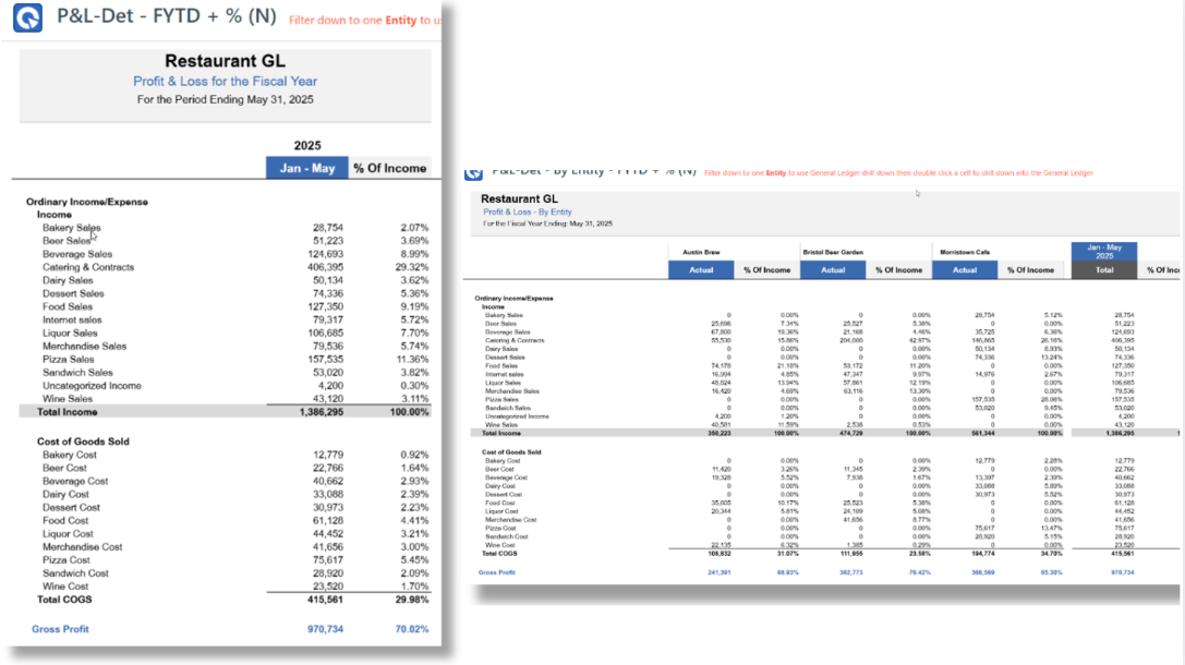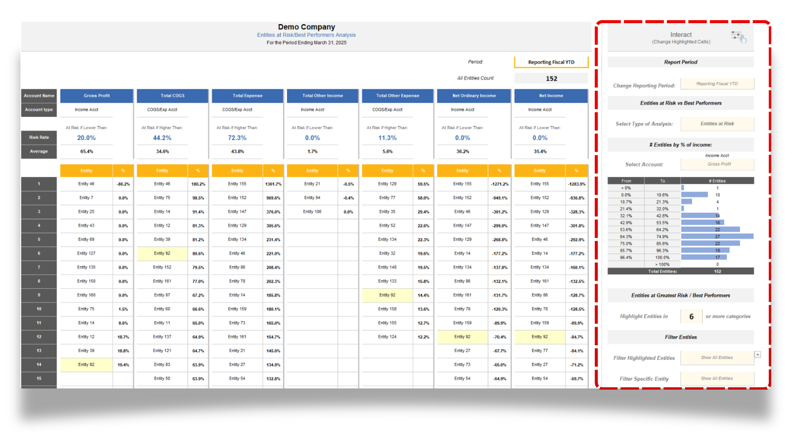 Go deeper. With interactive options, you can toggle periods, switch views (Amount vs. % of Income), and test “what-if” scenarios on the fly! Static reports become dynamic tools for sharper analysis.